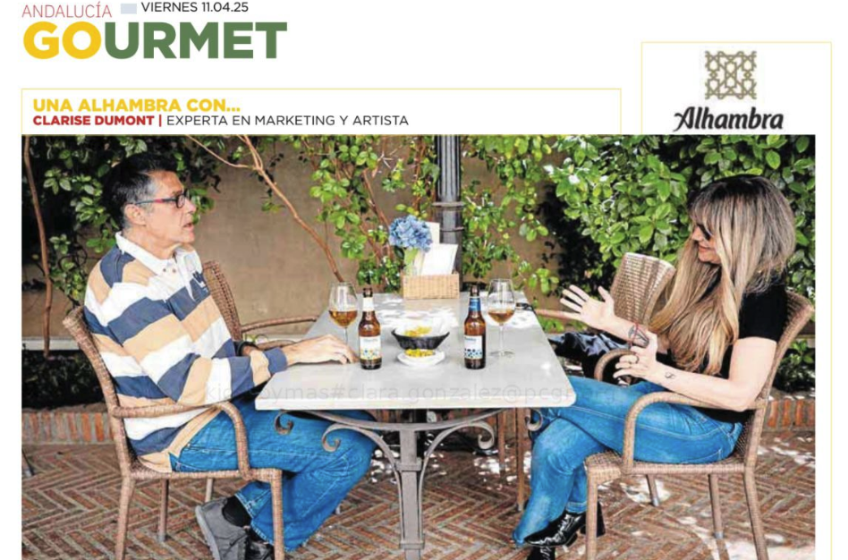 El encanto de nuestra terraza volvió a ser escenario de algo muy especial. La sección Gourmet del diario IDEAL recogió recientemente una conversación entre Clarise Dumont, artista y experta en marketing, y el periodista Jesús Lens, donde Onírico fue mucho más que el lugar del encuentro: fue inspiración, fue marco, fue tema.